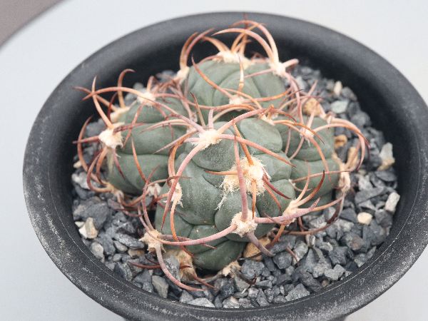 実生苗。短刺で刺が曲がる特徴の金鯱。