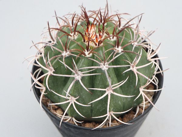 実生苗。短刺で刺が曲がる特徴の金鯱。